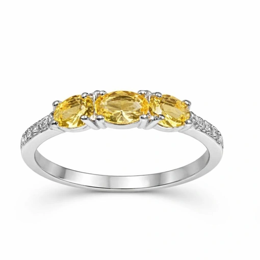 Anel 3 Pedras Zirconia Amarela de Prata